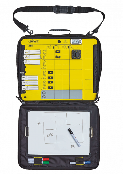チェックポイントシステムは、管理責任者が各隊員のSCBAタグをコントロールボードに集めながら、作業時間や自律性をチェックし、事故現場で働くすべての消防士に番号を付けることができるシステムです。